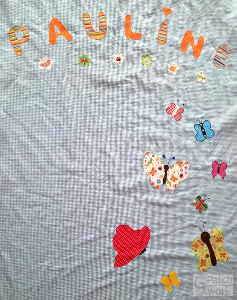 Auch ein wahres Liebhaberstück!In spezieller Schneidetechnick entstehen zunächst 15 große bunte Quadrate, die mit blauen Streifen versehen erst zu Reihen und dann zur Fläche zusammengesetzt werden. Durch diese Technik wirkt die gesamte Fläche wie ein bleiverglastes Fenster. In der Umrandung kehren in Trapezform sämtliche bisher verarbeiteten Stoffe noch einmal wieder!Diese Tagesdecke wurde auch zunächst für ein Einzelbett gearbeitet und musste ein paar Jahre später für ein Doppelbett entsprechend vergrößert werden, so dass nach abermals vielen Stunden aus dem kleinen ein noch größeres Fenster wurde!Auch diese Decke ist ein unbezahlbares Einzelstück, das nur eine Mutter verschenken kann! |