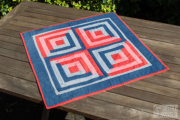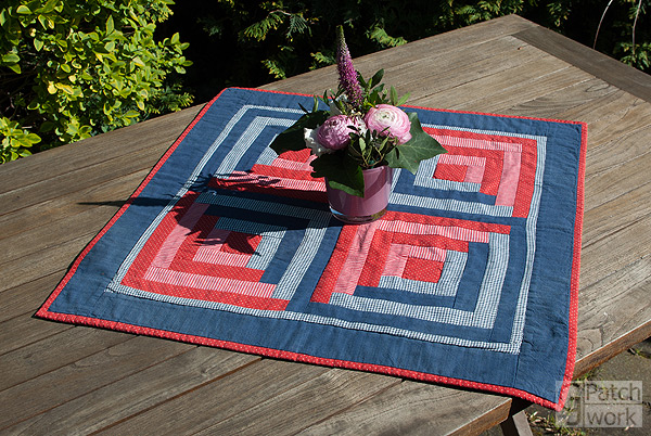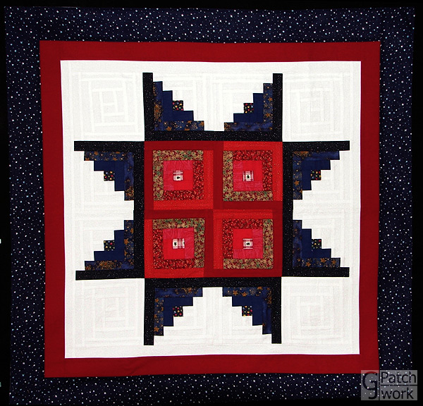 Aus 16 „Log-Cabin-Quadraten“ entsteht entsprechend angeordnet ein Stern. Der Stern ist in der Patchworktechnik kein spezielles Weihnachtsmotiv, aber mit den entsprechenden Stoffen, wird es einfach ein wunderbarer Weihnachtsstern und eine Zierde für jeden Tisch. |