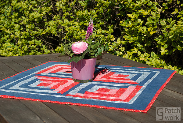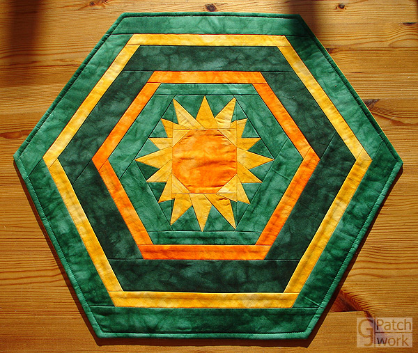 Diese kleine Decke zaubert den Sonnenschein in jedes Zimmer! Um die Sonne herum werden Streifen genäht bis die passende Größe für jeden Tisch erreicht ist. |